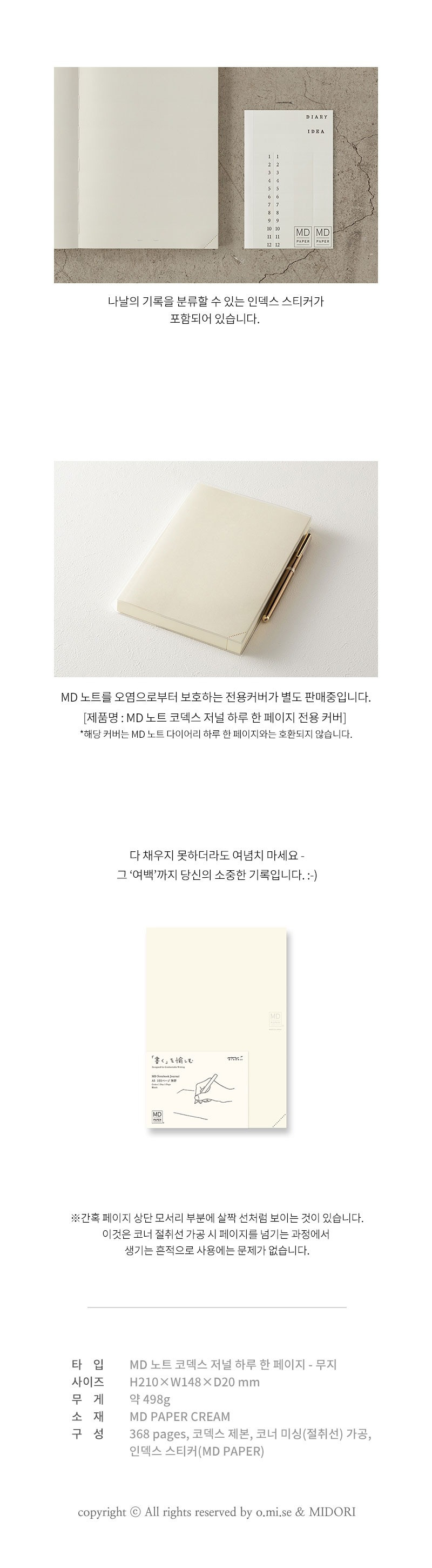 미도리 MD 노트 코덱스 저널 하루 한페이지 (A5) 무지 A