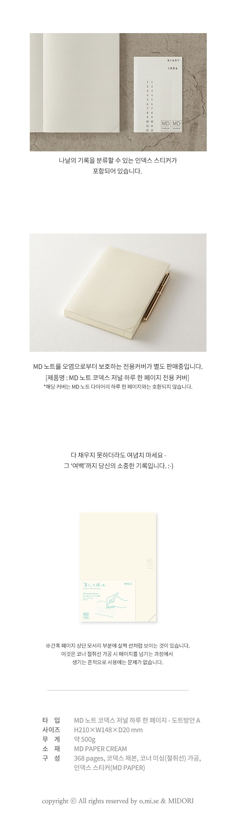 미도리 MD 노트 코덱스 저널 하루 한페이지 (A5) 도트 방안 A