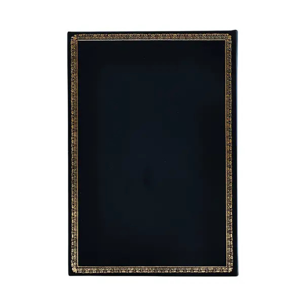 블랙 에디션 디자인은 우아한 가죽 스타일 커버 위에 장식된 금색 프레임이 특징이며, 책등 부분에는 세련된 디테일이 더해져 흥미를 더해줍니다.