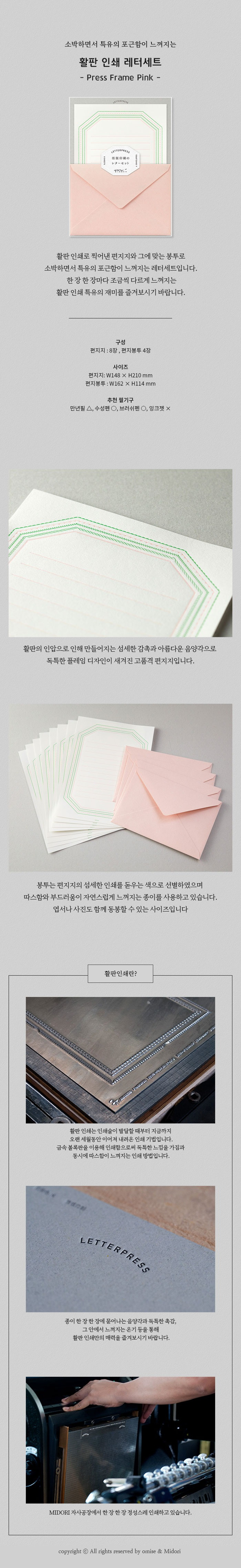 미도리 편지지 활판 인쇄 레터 세트 - Press Frame Pink