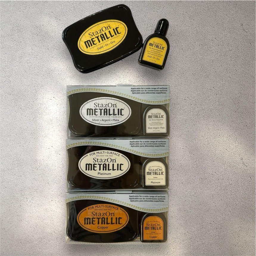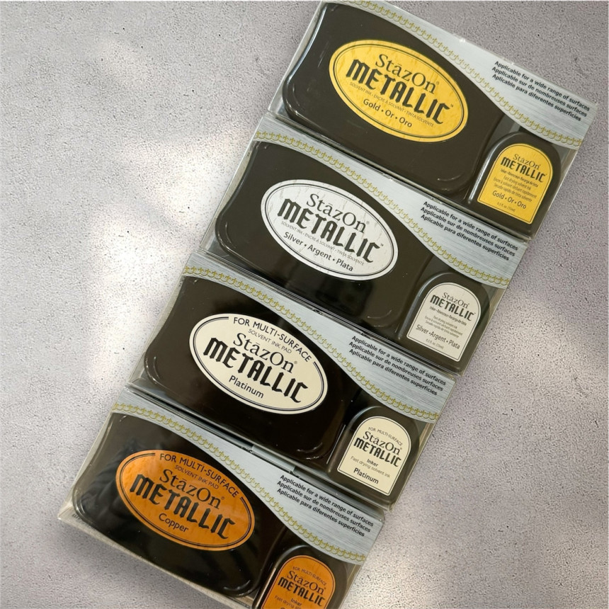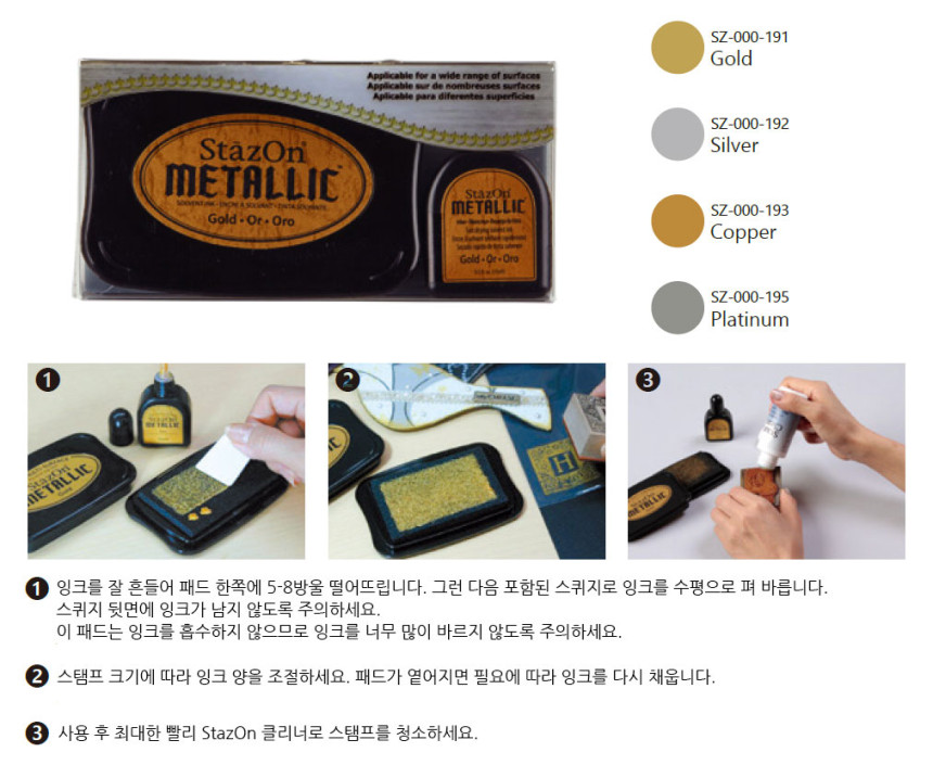- 스테이즈온 잉크 패드의 메탈릭 색상을 가진 잉크 패드와 리필용 잉크가 한 세트인 상품입니다.