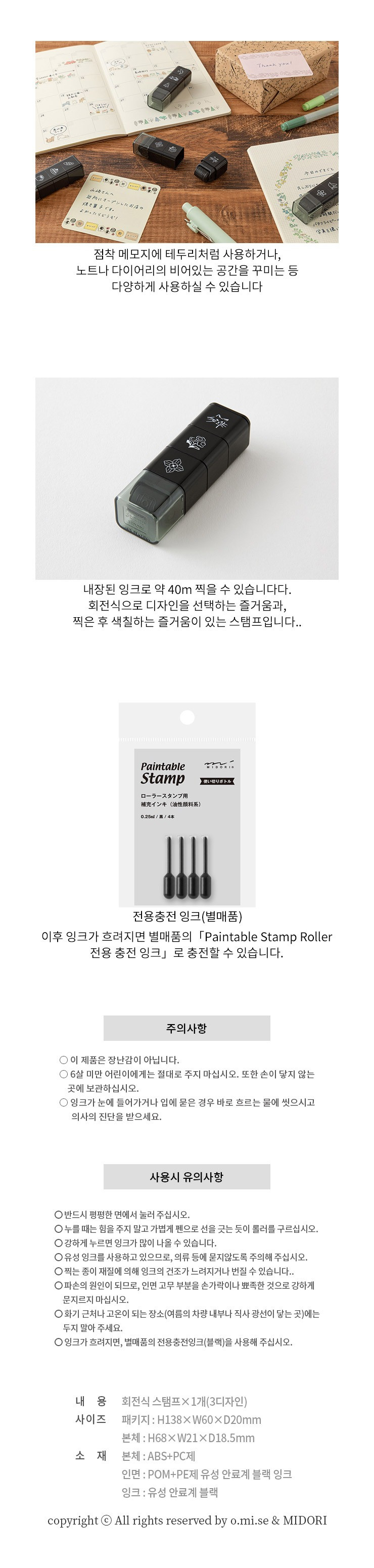 미도리 스탬프 Paintable Stamp Roller - Cat & Landscape